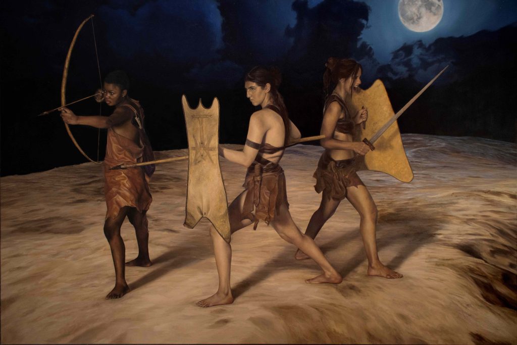 Diodorus Siculus tells the story of the Amazons in the third book of his library in chapters 52-55. He mentioned that the Amazons in Libya are very old and much older than the Amazons of the East who were contemporary with the Trojan War. They are wandering warrior women who reached Asia Minor. The Amazons lived around Lake Tritonis (in present-day Benghazi) and went out on successive raids on the Atlanteans. They cut off their right breast to facilitate the movement of the arm during combat. The life of the Amazons is dedicated to fighting and preserving virginity. After the end of the period of armed service, they can marry and have children. The Amazon army is reserved for virgins only and no one else is allowed to fight. There is an annual festival held around Lake Tritonis in which young girls are divided into two opposing rows to fight with sticks and stones. The one who dies from her wounds is the fake and empty one.