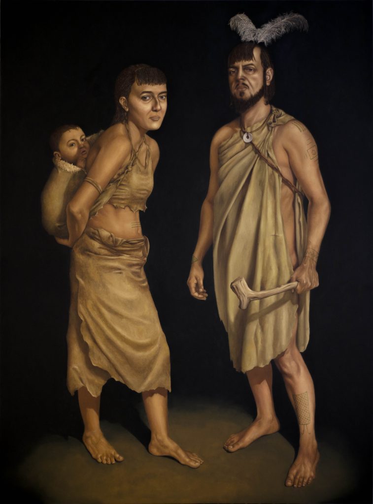 The painting is a depiction of the Libyan past and forgotten roots, and it is an imagination of a model from the Libyan Tehenu tribe and what it was like 4000 years ago. This Libyan family is depicted on the walls of the Bani Hassan tombs in Tomb No. 14.