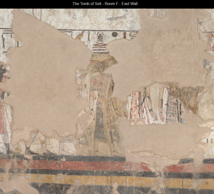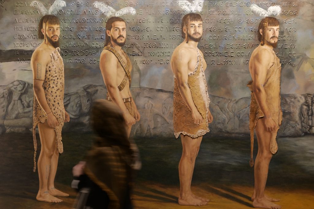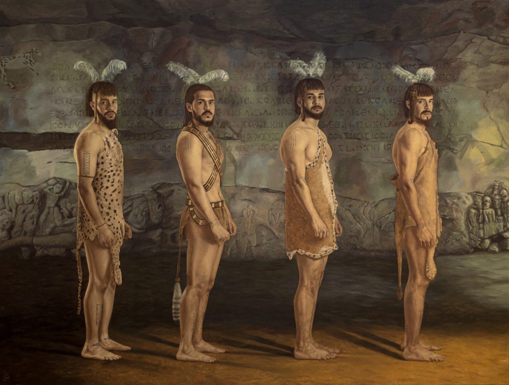 In the Temple of Seti we find the mural of the four leaders, which is very well known to all Libyans as representing the prehistoric tribes of Libya. However, this image has nothing to do with the costume of the Libyans or the four Libyan tribes. It is merely the imagination of the artist who painted it in a way that suits the imagination of the Egyptian artist at that time and this can be seen through clothing. This mural from the Temple of Seti is treated in our time as a reality from our past, which reveals the depth of the catastrophe that our collective memory has known over previous generations and the depth of the destruction of our knowledge of ourselves and our identity. Oric Bates said in his well-known book, “The Easterner Libyans” that this costume may have been a gift from the Sea Peoples to the tribal leaders, and that the tribe in the mural was only the Temehu, and he added that the clothing of the Libyans at that time was composed of animal skins. In this painting, based on studies and information about the way Libyans dress, the way they style their hair, and the tattoos on their bodies, this painting comes to reformulate the collective memory and to build a memory that represents us and to be closer to reality and our Libyan identity at that time.