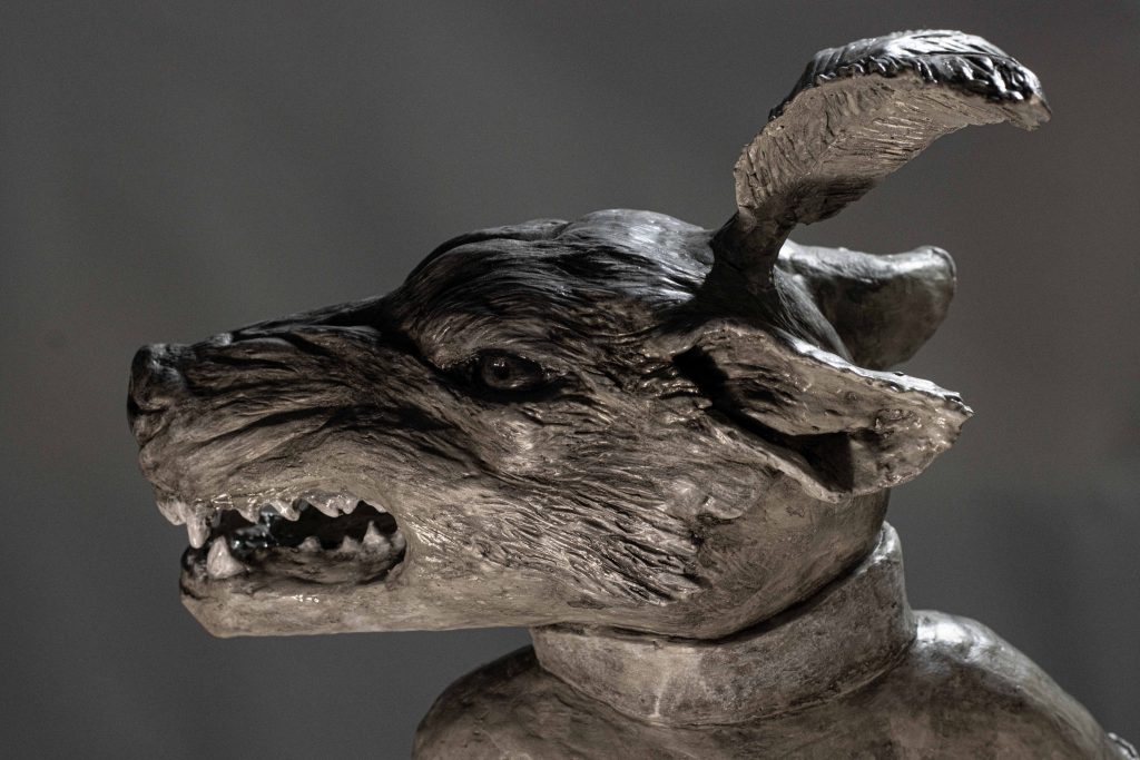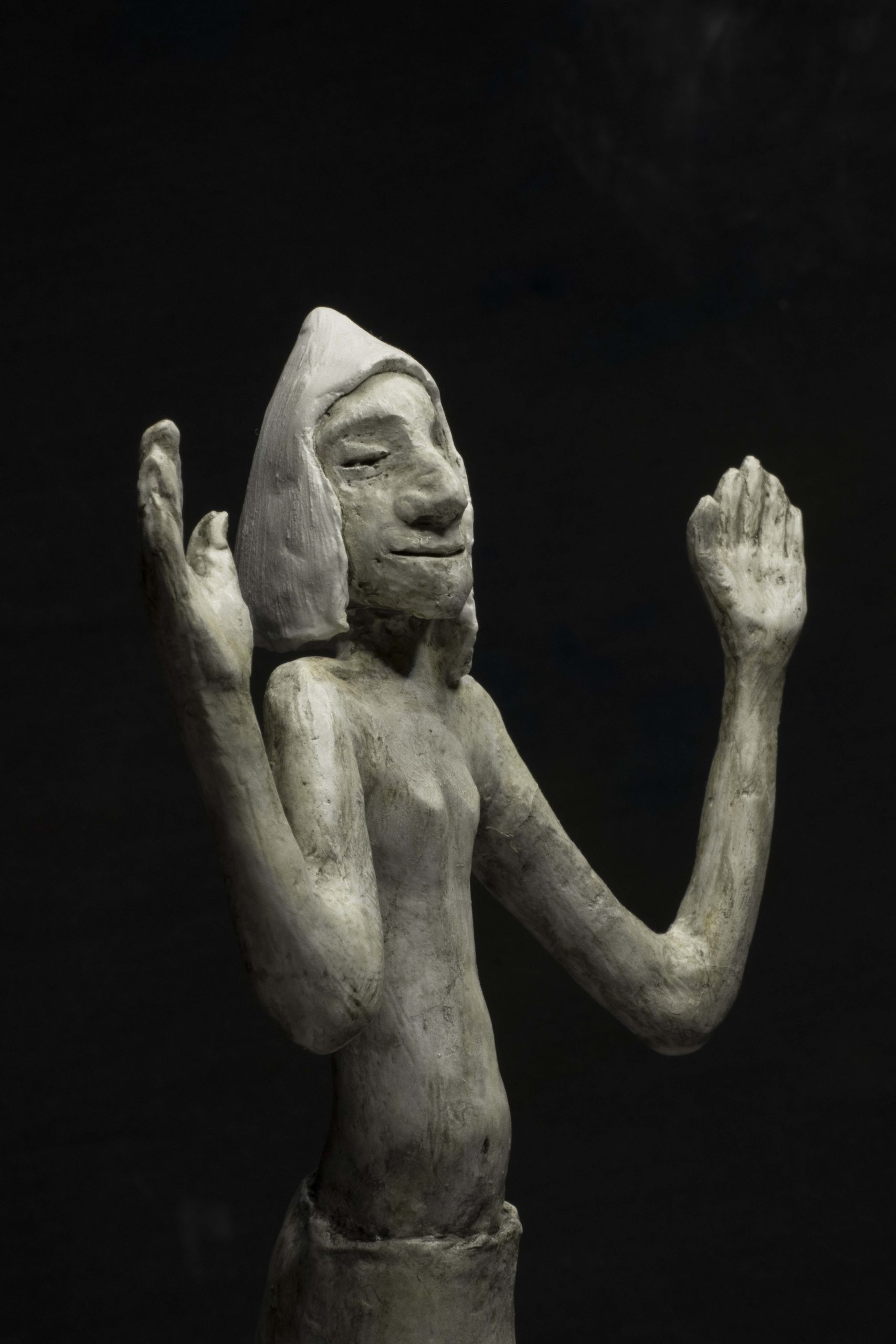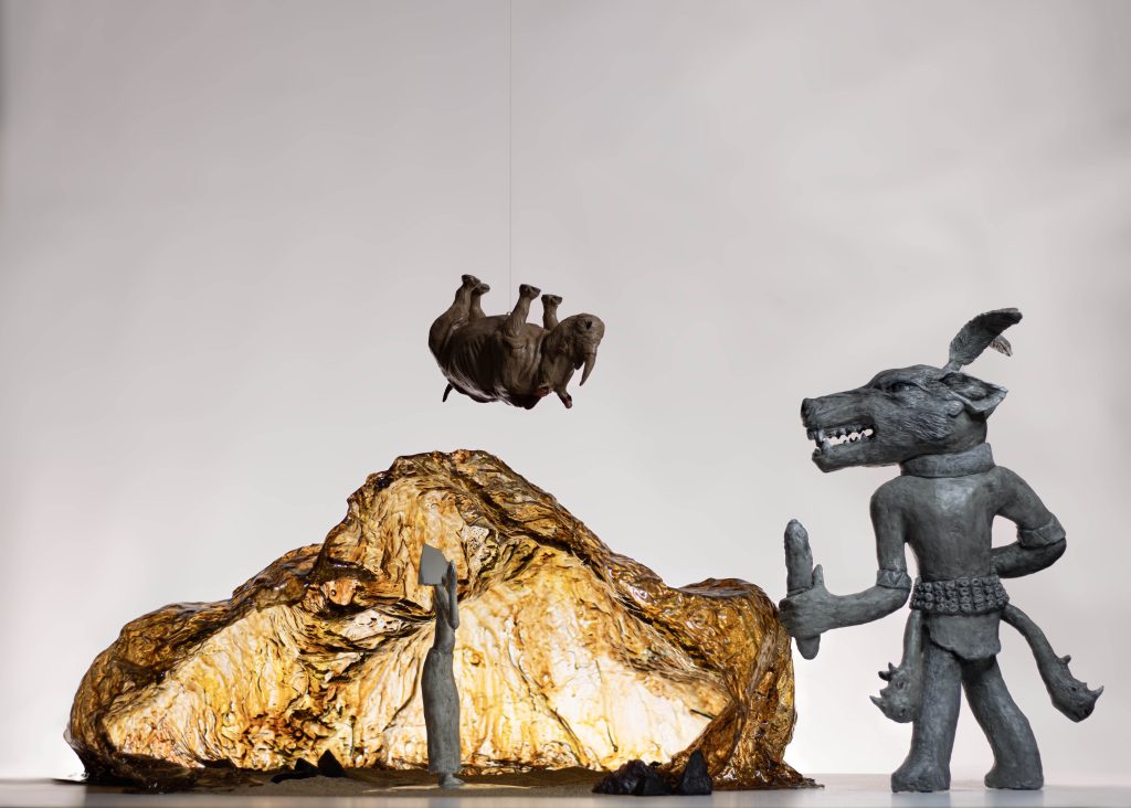 The Jackal is a mythical creature in Libyan rock art. Among all the animals, a prehistoric man in Libya chose the head of a jackal to create an imaginary creature. This creature with the head of a jackal is widespread and abundant in their murals, especially in the Masak. It often appears armed with an axe or dagger and shows very aggressive teeth. In other cases in the Masak, the jackal appears smiling and perhaps laughing and making movements that indicate simplicity and kindness. The jackal was associated with life and death by prehistoric men in Libya. It is a symbol of death when it appears with animals upside down and falling into the void. This animal is usually a rhinoceros in most murals, and at other times it is with elephants at the moment of birth to help and provide assistance. These murals contain a great contradiction to the role of the jackal in Libyan mythology. In this sculpture, the creature that embodies the jackal is embodied as a symbol of death. We find the rhinoceros falling upside down into the void, representing the transition to the other world. Also, Tanit appears, which represents the fertility religion of prehistoric man. The hands The offering here is a veneration of the cycle of life, death, and fertility after drought.